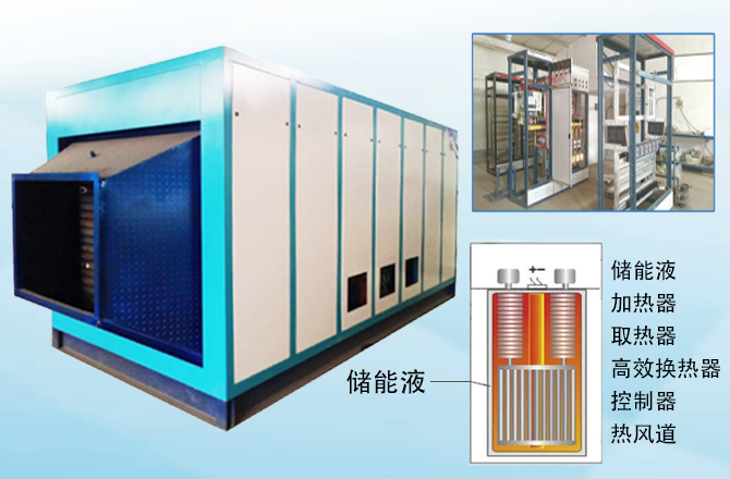 工作原理:礦用防爆熱風機組針對煤礦礦井防凍采暖而研發,機組采用成套電控柜,手動、自動一體調節,設備通過檢測的溫度,實施反饋信息,隨時調節供熱量,實現溫度的自動調節。機組利用電力驅動儲能介質加熱高溫儲存熱量,通過自控裝置將熱量釋放,以達到24小時均衡供熱的效果。